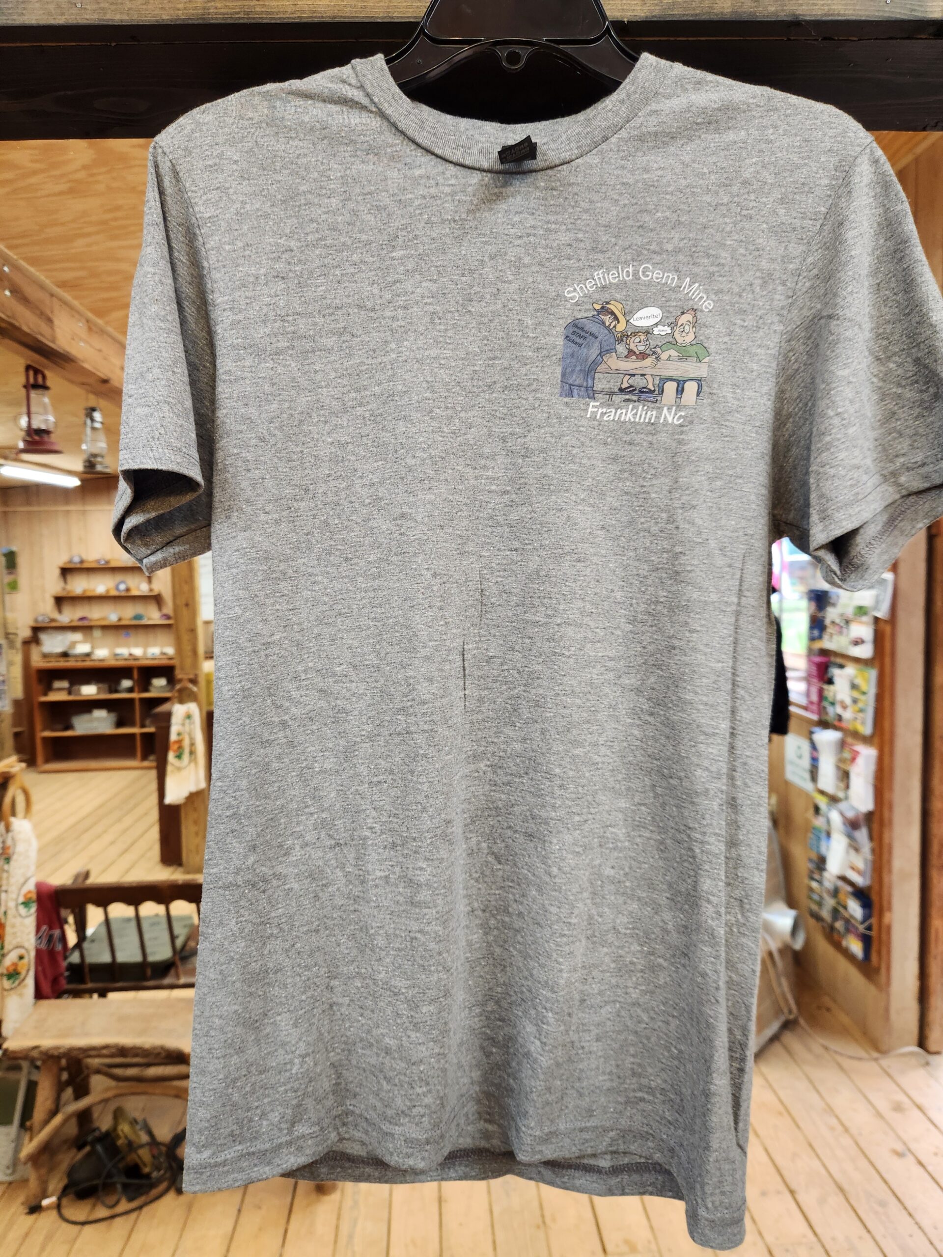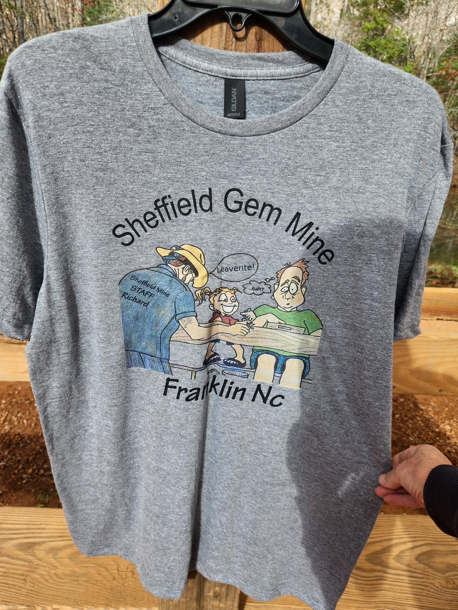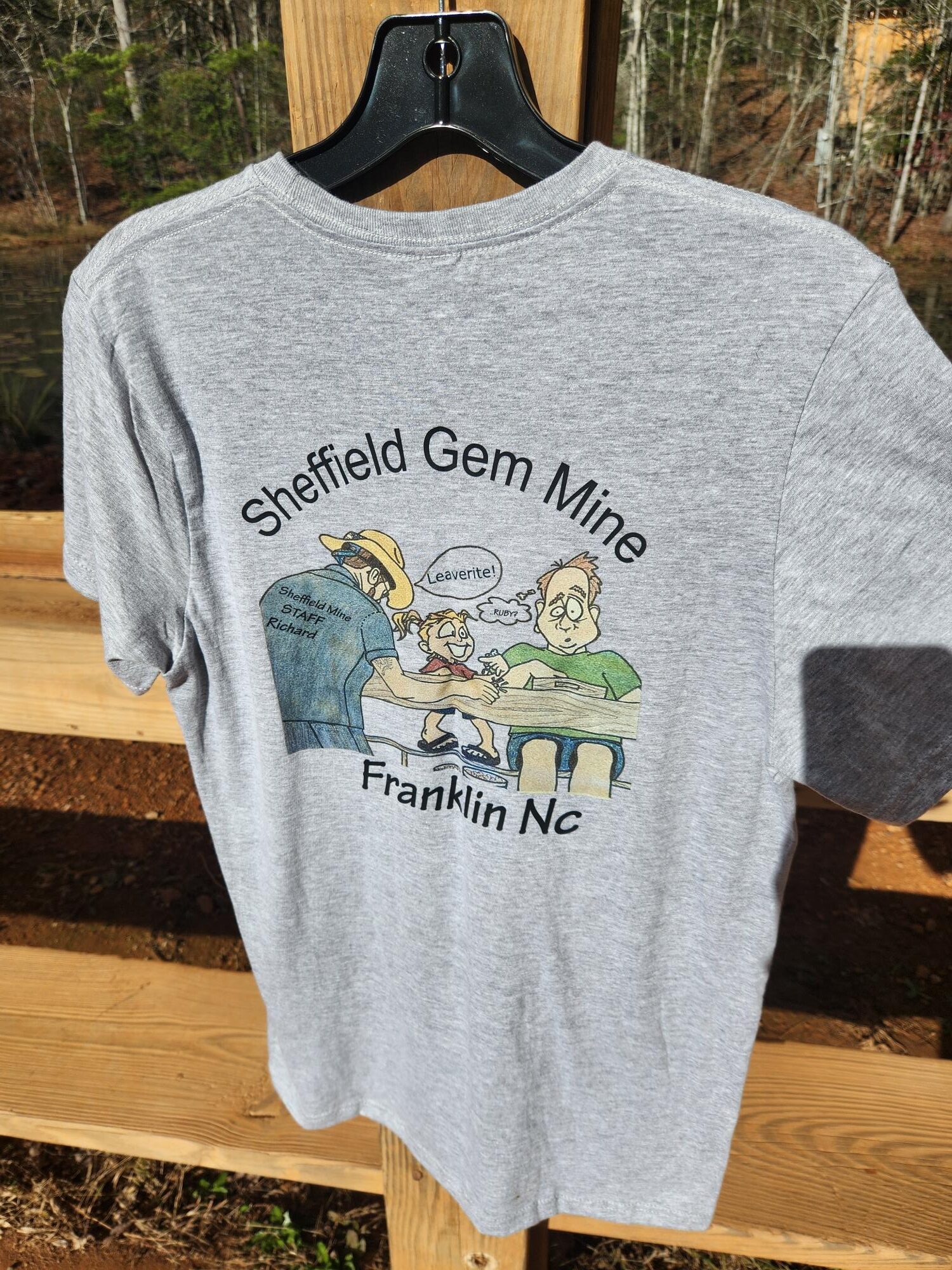 This is a Vintage Graphic featuring Richard assisting on the Flume. We were so excited that a customer had a picture of it for us to replicate for all of you. We have a few versions of the Graphic, some with black lettering and others with White, plus a version with the Graphic on the front and not the back. We are discontinuing the Cream when we sell out. Richard is actively working at the mine and some customers have asked him to Autograph this shirt. Please let us know if that is something you would like….he’s happy to do it.